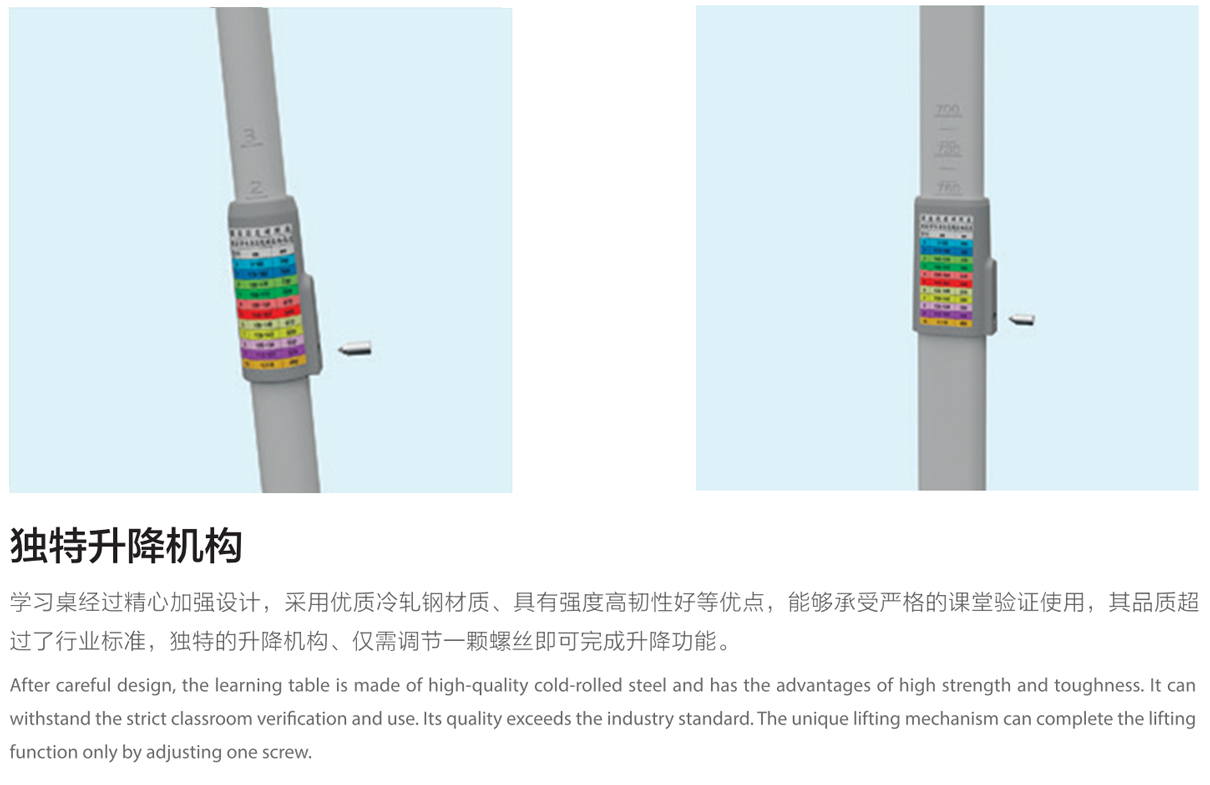 4.桌子及椅子管壁:1.8mm壁厚圓形管、可升降;