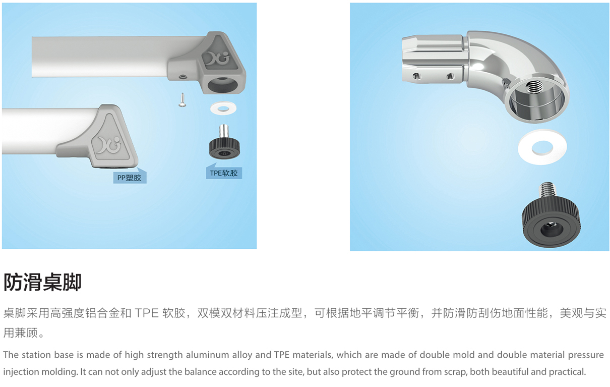 5.桌腳掌:1.8mm壁厚,腳套底有4個(gè)平衡調節機構。